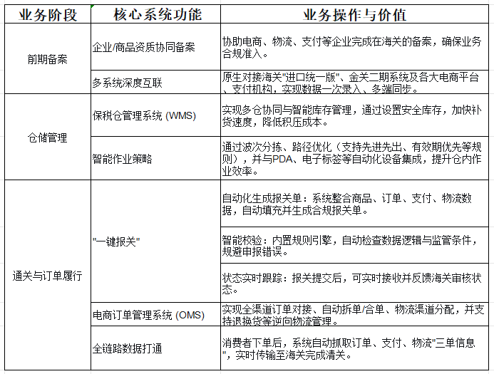 四方網(wǎng)絡(luò)的解決方案圍繞“駝鈴關(guān)務系統(tǒng)”和“商家運營平臺”等核心產(chǎn)品,構(gòu)建了覆蓋保稅備貨業(yè)務全流程的管理能力。下面的表格清晰地展示了其核心業(yè)務流程及對應的系統(tǒng)支撐: